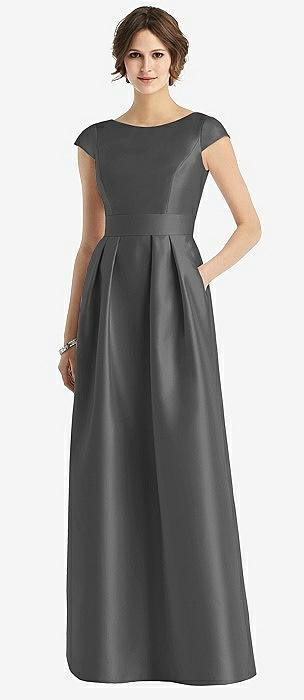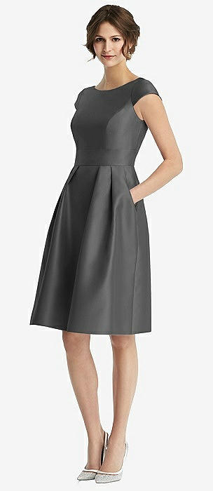 Cap Sleeve Pleated Skirt Dress with Pockets in pewter