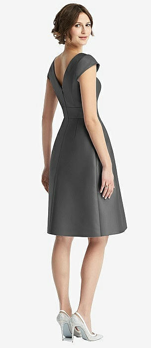 Bateau Neck Satin High Low Cocktail Dress in pewter
