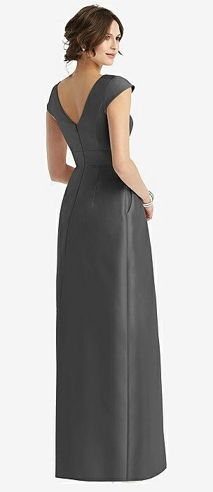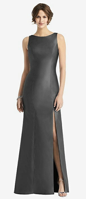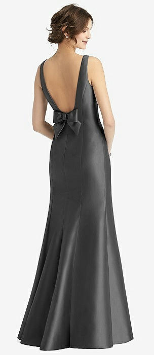 Sleeveless Satin Trumpet Gown with Bow at Open-Back in pewter
