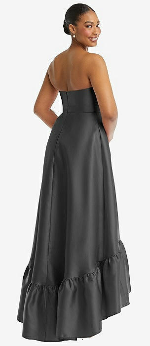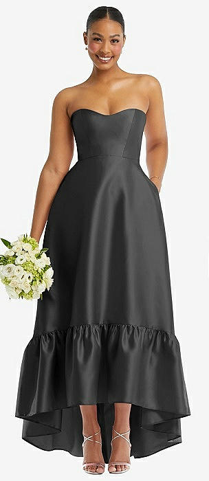 Strapless Deep Ruffle Hem Satin High Low Dress with Pockets in pewter