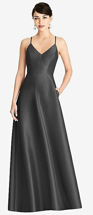 V-Neck Full Skirt Satin Maxi Dress in pewter