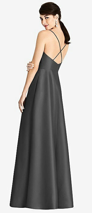 Sleeveless Square-Neck Princess Line Gown with Pockets in pewter