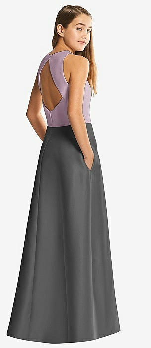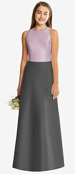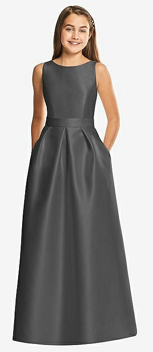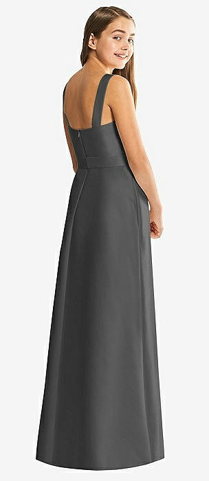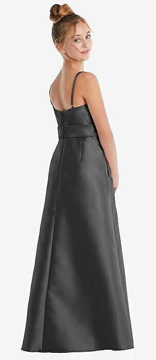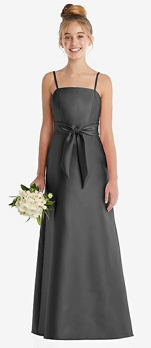 Spaghetti Strap Satin Junior Bridesmaid Dress with Mini Sash in pewter