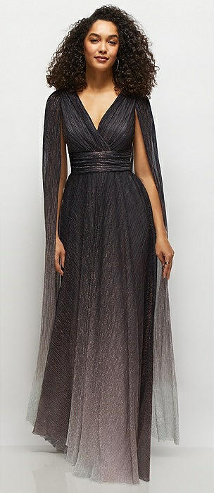 Streamer Sleeve Ombre Pleated Metallic Maxi Dress