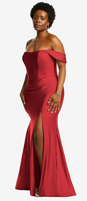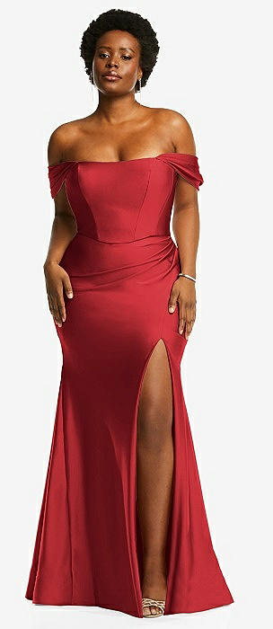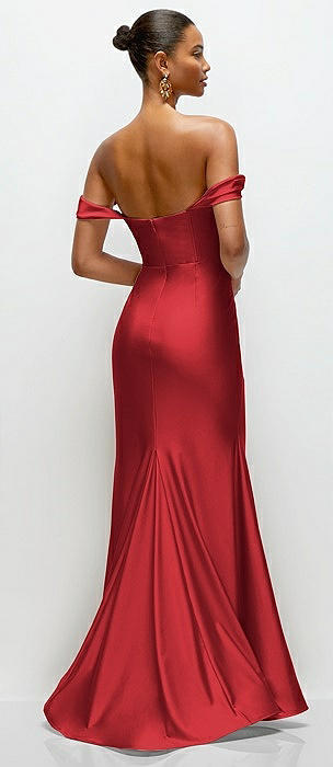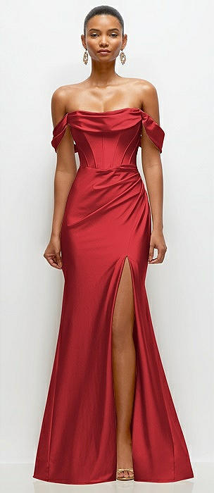Off-the-Shoulder Corset Stretch Satin Mermaid Dress with Slight Train in poppy red