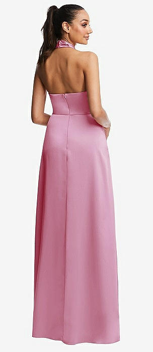 Scarf Tie High-Neck Halter Maxi Slip Dress in powder pink