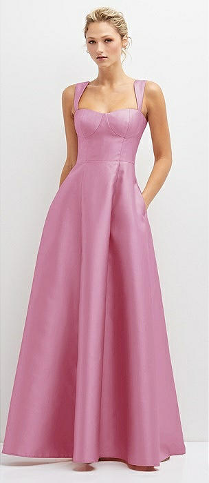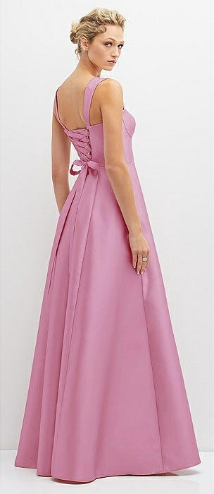 Lace-Up Back Bustier Satin Dress with Full Skirt and Pockets in powder pink