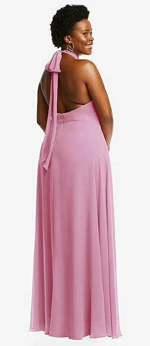 Draped Twist Halter Tie-Back Trumpet Gown in powder pink