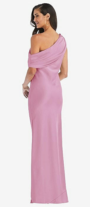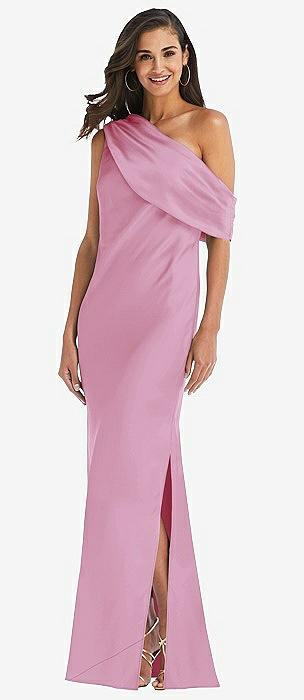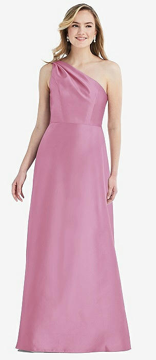 Shirred One-Shoulder Satin Trumpet Dress - Maddie in powder pink