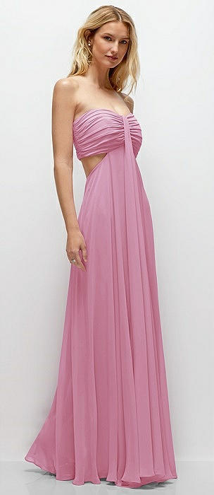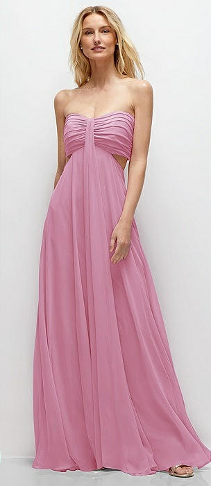 Strapless Empire Waist Cutout Maxi Dress with Covered Button Detail in powder pink