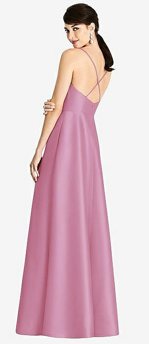 V-Neck Full Skirt Satin Maxi Dress in powder pink
