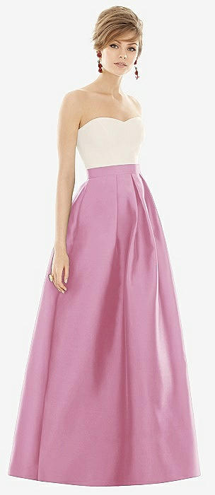 Strapless Pleated Skirt Maxi Dress with Pockets in powder pink