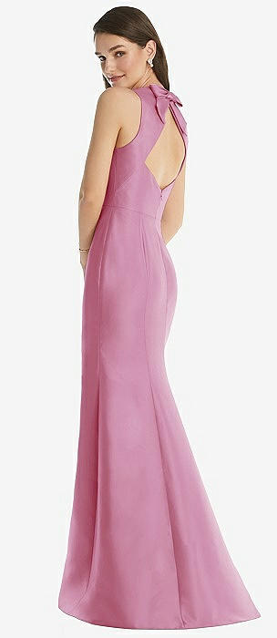 Sleeveless Satin Trumpet Gown with Bow at Open-Back in powder pink