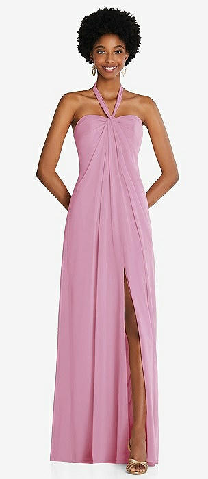Draped Chiffon Grecian Column Gown with Convertible Straps in powder pink