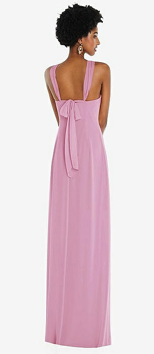 Jewel Neck Bowed Open-Back Trumpet Dress with Front Slit in powder pink