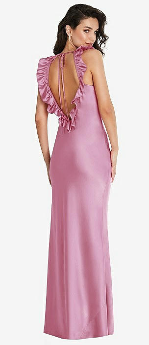 Ruffle Trimmed Open-Back Maxi Slip Dress in powder pink