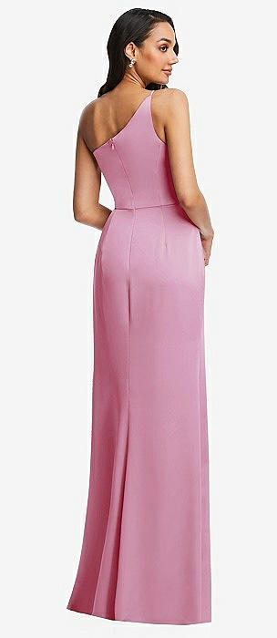 Draped One-Shoulder Satin Trumpet Gown with Front Slit in powder pink