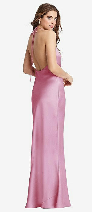 Draped Twist Halter Tie-Back Trumpet Gown in powder pink
