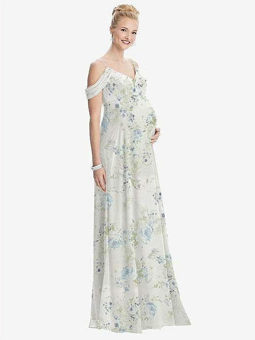 Draped Cold-Shoulder Chiffon Maternity Dress in bleu garden