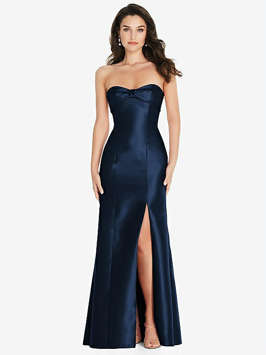 Bow Cuff Strapless Princess Waist Trumpet Gown in midnight navy
