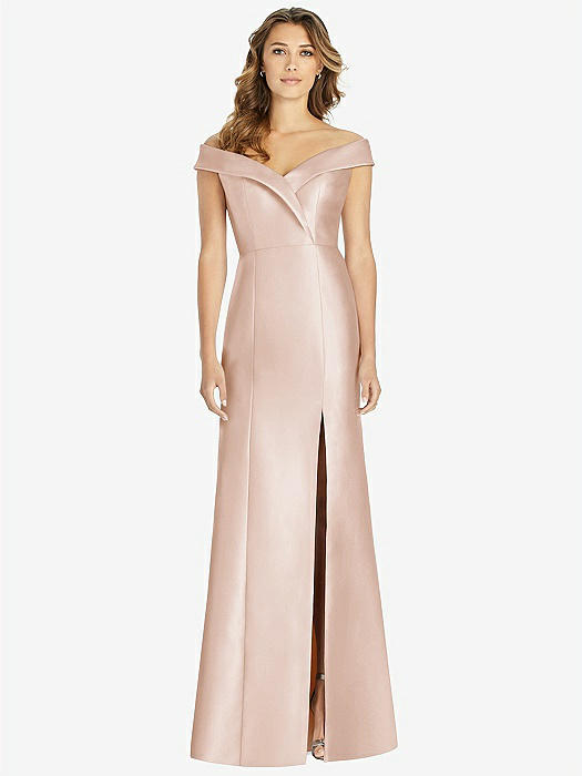 Off-the-Shoulder Cuff Trumpet Gown with Front Slit in cameo