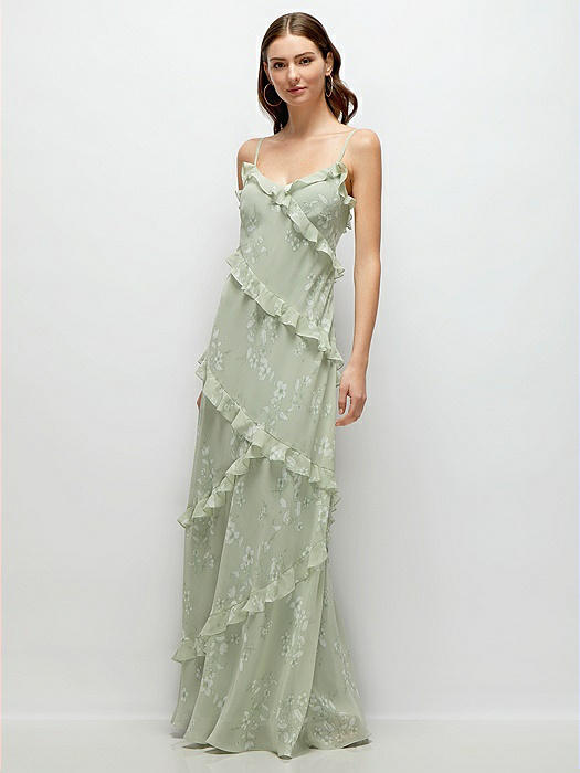 Asymmetrical Ruffle Chiffon Bias Slip Maxi Dress in vintage primrose sage