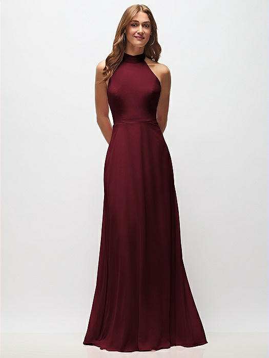 High Neck Halter Backless Maxi Dress in cabernet