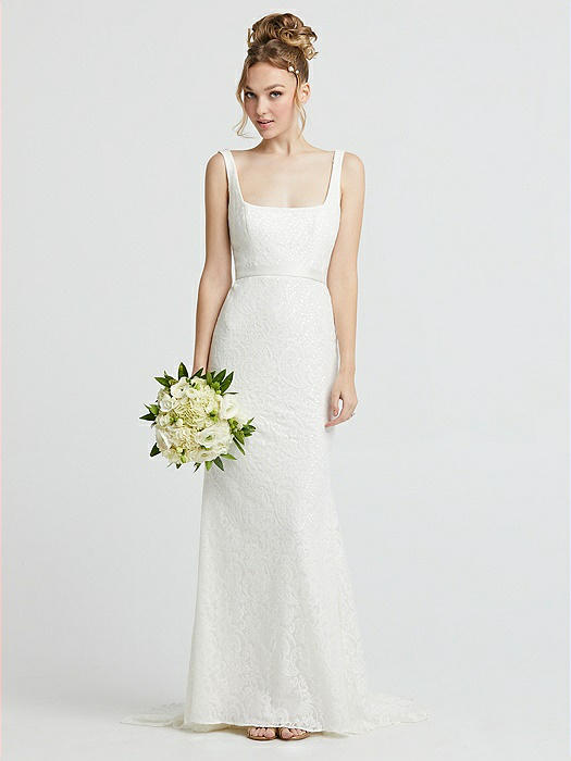 Scoop Back Sequin Lace Trumpet Wedding Dress in ivory
