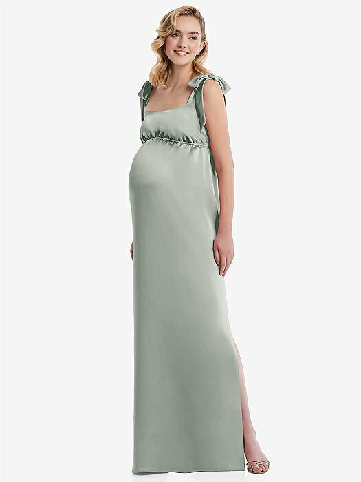 Flat Tie-Shoulder Empire Waist Maternity Dress in willow green