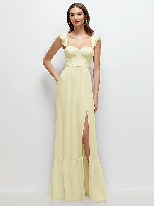 Ruffle Strap Chiffon Bustier Maxi Dress with Ruffle Hem A-Line Skirt in butter yellow