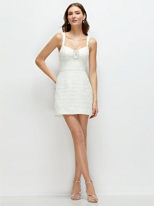 Luxe Bridal Tweed Mini Dress with Sequin Flower Detail in ivory shimmer
