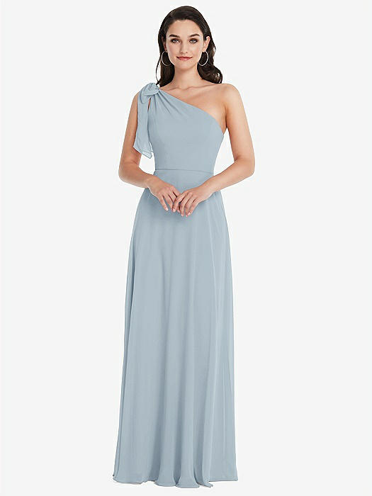 Draped One-Shoulder Maxi Dress with Scarf Bow in mist