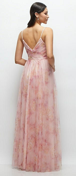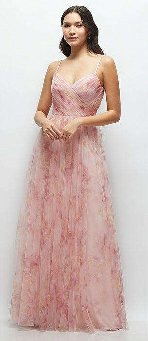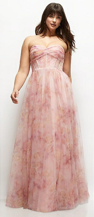 Floral Strapless Twist Cup Corset Tulle Dress with Long Full Skirt in rose garden