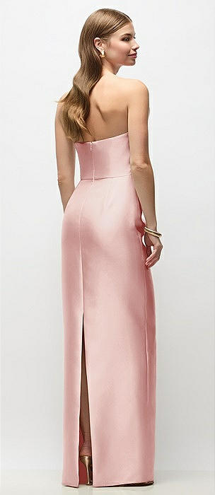Strapless Cuff Satin Maxi Dress with Column Skirt & Back Bow in rose