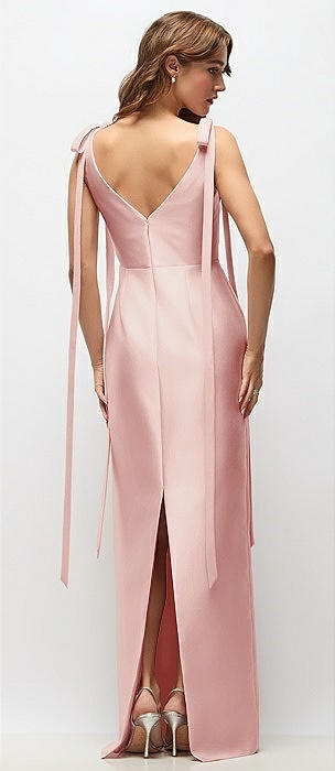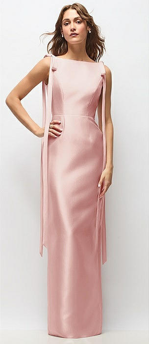 Bateau Neck Satin Column Maxi Dress with Exaggerated Tail Bow Straps in rose