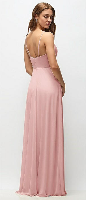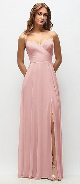 Wrap Bodice Chiffon Maxi Dress with Adjustable Spaghetti Straps in rose