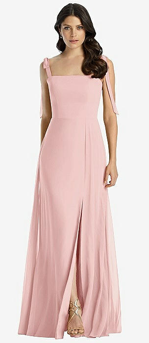 Tie-Shoulder Chiffon Maxi Dress with Front Slit in rose