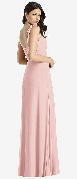Bow-Shoulder V-Back Chiffon Gown with Front Slit in rose