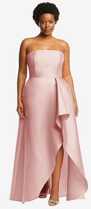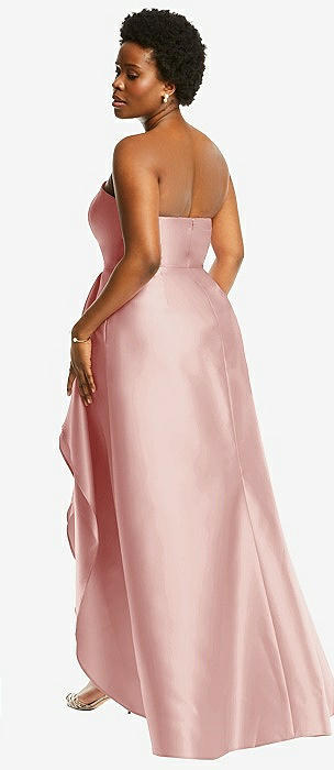 Strapless Satin High Low Dress with Pockets in rose