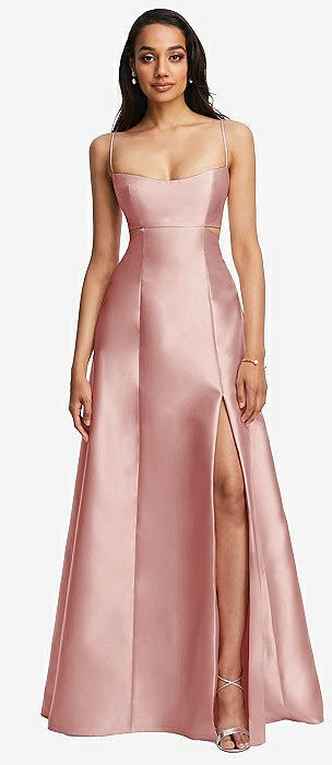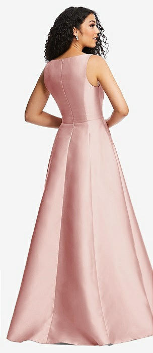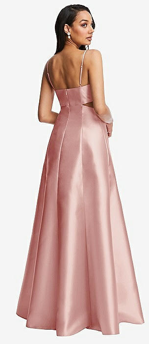 Open Neckline Cutout Satin Twill A-Line Gown with Pockets in rose