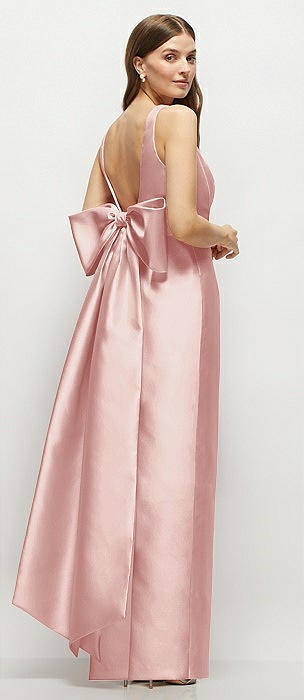 Strapless Satin Column Maxi Dress with Oversized Handcrafted Bow in rose