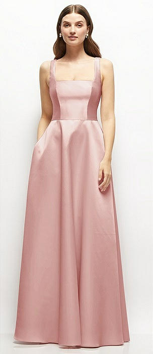 Square-Neck Satin Maxi Dress with Full Skirt in rose