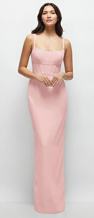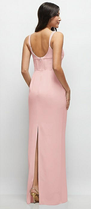 Corset-Style Crepe Column Maxi Dress with Adjustable Straps in rose