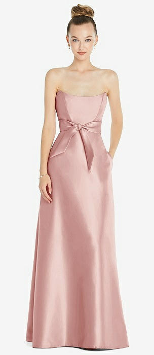 Strapless Notch Satin Gown with Pockets in rose