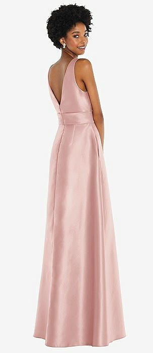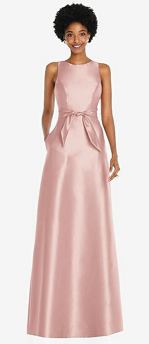 Sleeveless Satin Trumpet Gown with Bow at Open-Back in rose