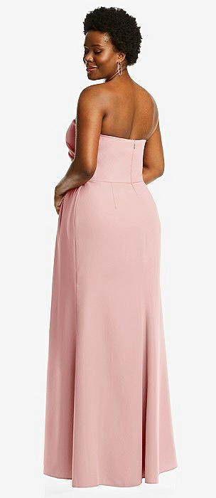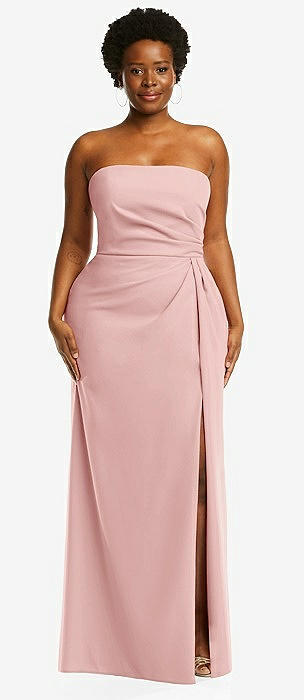 Strapless Pleated Faux Wrap Trumpet Gown with Front Slit in rose