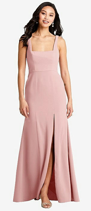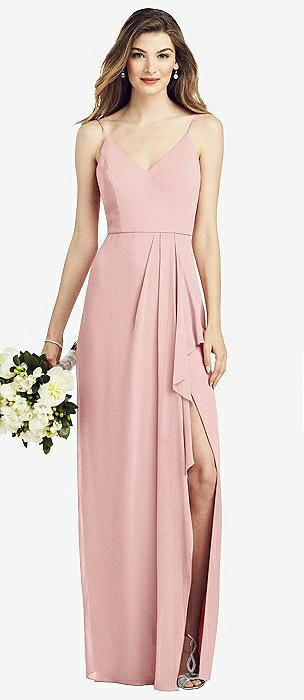 Spaghetti Strap Draped Skirt Gown with Front Slit in rose