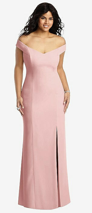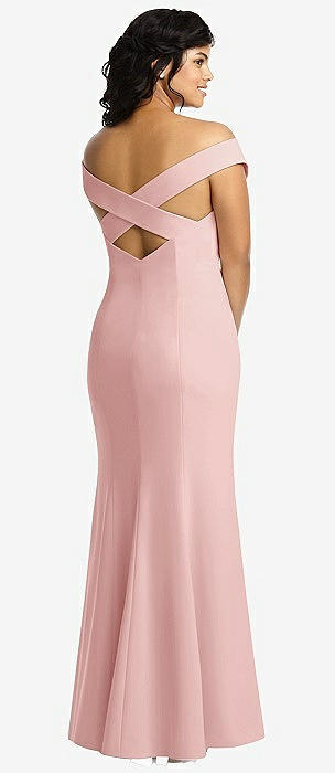 Off-the-Shoulder Criss Cross Back Trumpet Gown in rose