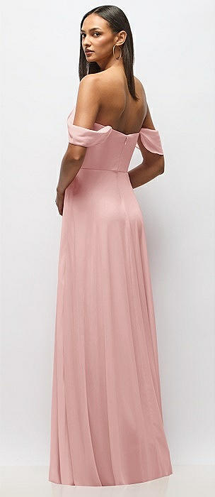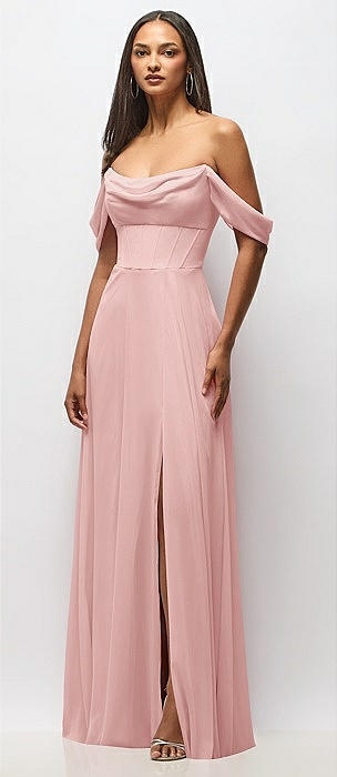 Chiffon Corset Maxi Dress with Removable Off-the-Shoulder Swags in rose