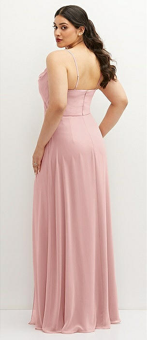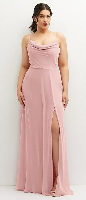 Cowl-Neck A-Line Maxi Dress with Adjustable Straps in rose